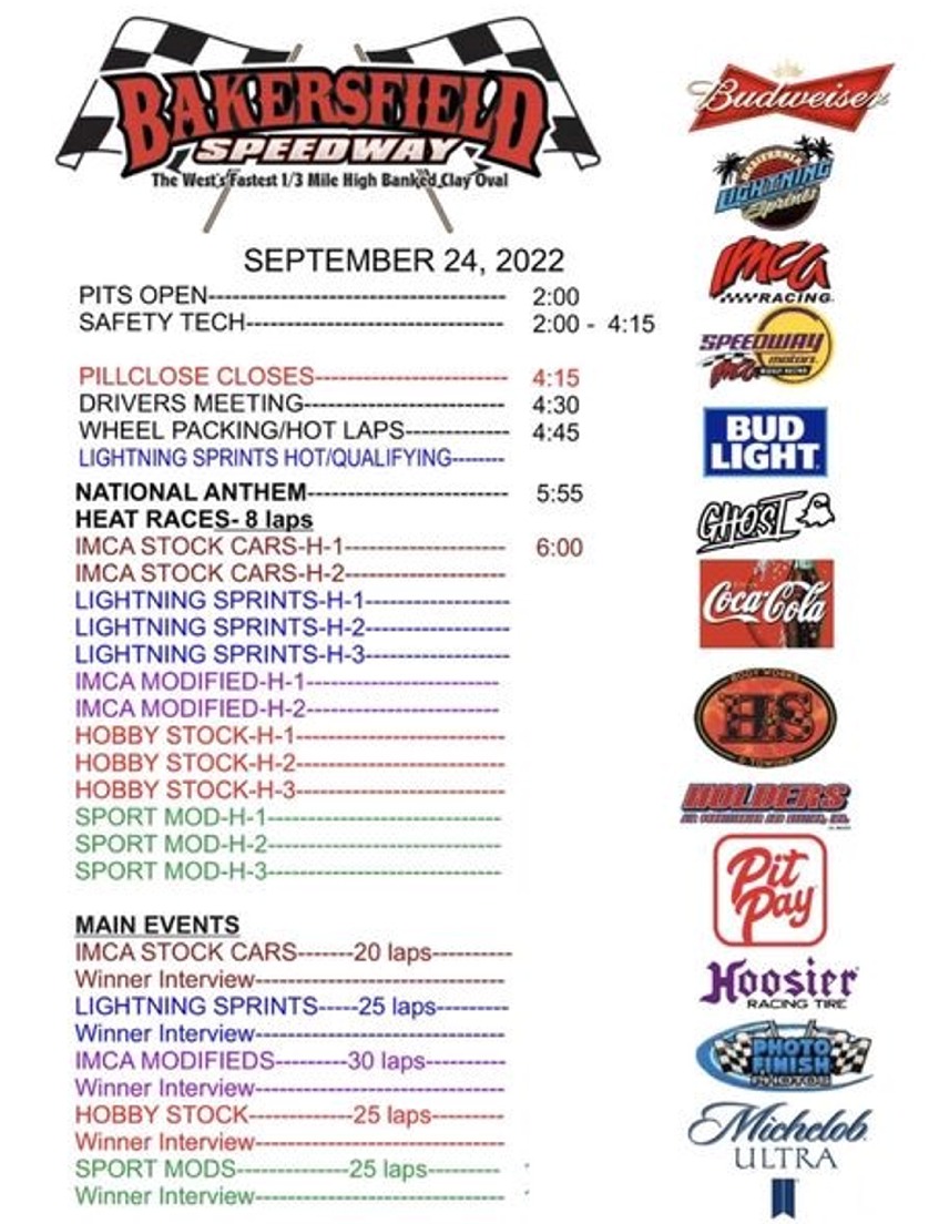 Schedule of events at Bakersfield